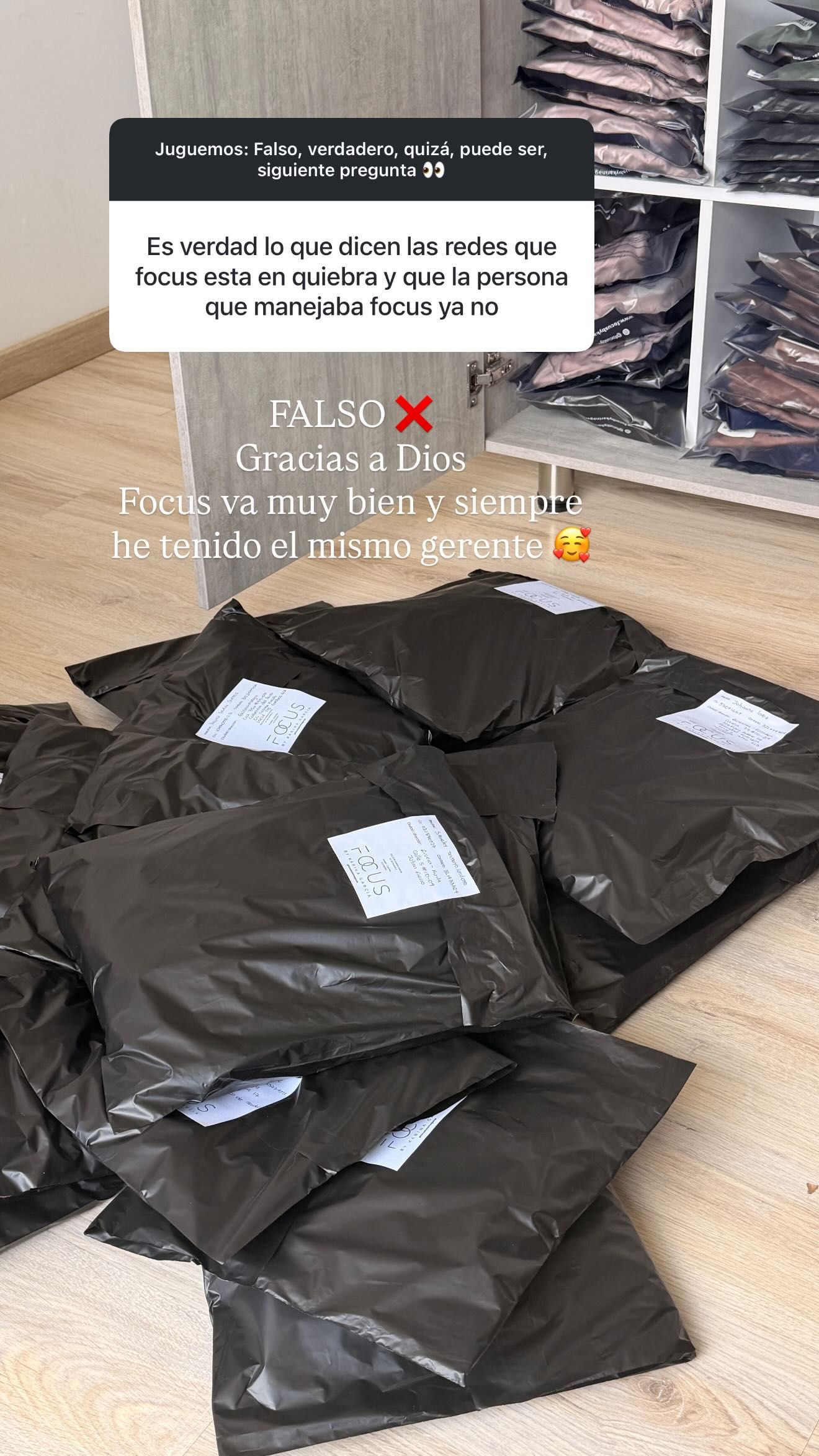 La empresaria dedicó parte de la dinámica a corregir información falsa que circula en redes. Uno de los rumores más serios afirmaba que Focus, su marca deportiva, estaba en quiebra y había cambiado de gerente. Karina García lo desmintió de forma rotunda: "Falso. Gracias a Dios, Focus va muy bien y siempre he tenido el mismo gerente".